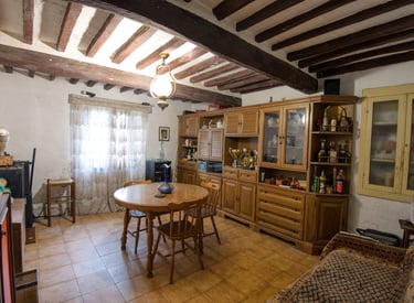 Casolare in pietra ,soffitto con travi a vista